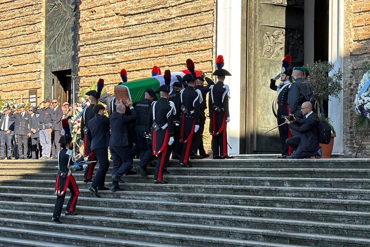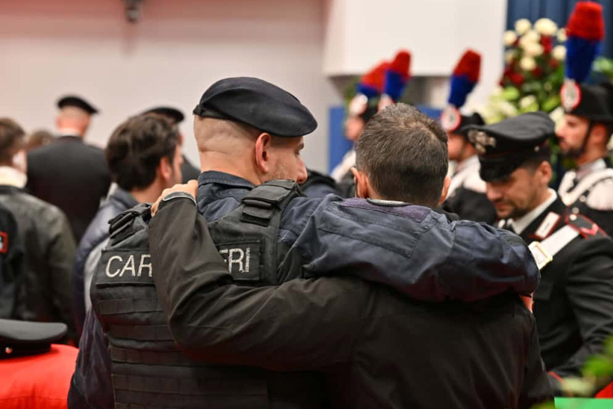 Le tre bare sonno avvolte nel tricolore e su ognuna c'è una foto. Sono presenti le più alte cariche dello Stato: il presidente della Repubblica, Sergio Mattarella, la premier Giorgia Meloni, i ministri della Difesa, Guido Crosetto, dell'Interno, Matteo Piantedosi, dell'Università, Anna Maria Bernini, i presidenti di Senato e Camera, Ignazio La Russa e Lorenzo Fontana. C'è anche il presidente della Regione Veneto, Luca Zaia. Sono presenti anche i 27 colleghi feriti nell'esplosione di Castel d'Azzano. Alla funzione sono presenti anche il Capo di Stato Maggiore della Difesa, Luciano Portolano, e il Comandante Generale dell'Arma dei Carabinieri, Salvatore Luongo. Concelebrano le esequie, mons. Claudio Cipolla e mons. Domenico Pompili, vescovo di Verona.