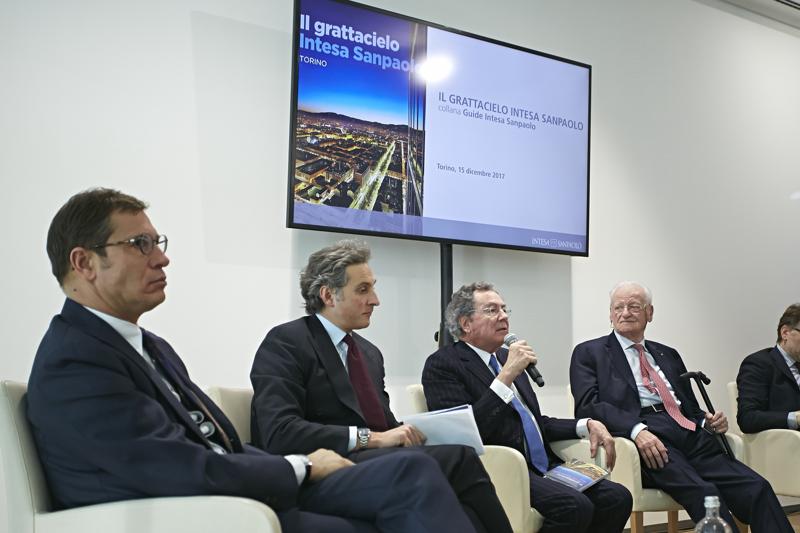 Il grattacielo di Intesa Sanpaolo diventa una guida multimediale. Presenti alla presentazione della pubblicazione, per Intesa Sanpaolo, il presidente Gian Maria Gros-Pietro, Michele Coppola ed Enrico Salza.