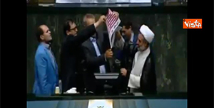 Iran bandiera Usa data alle fiamme nel parlamento video Redazione Affaritaliani 10 Maggio 2018, 10:03 fiamme, Iran, parlamento, video