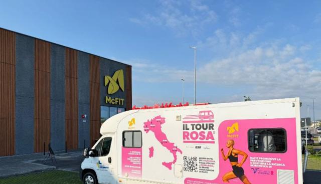 Dal 13 al 19 ottobre, una clinica mobile ha attraversato l’Italia fermandosi nelle palestre McFIT di Mestre, Milano, Torino, Roma e Bari, offrendo gratuitamente circa 200 visite senologiche ed ecografie mammarie alle abbonate. Un gesto concreto per promuovere la cultura della prevenzione.