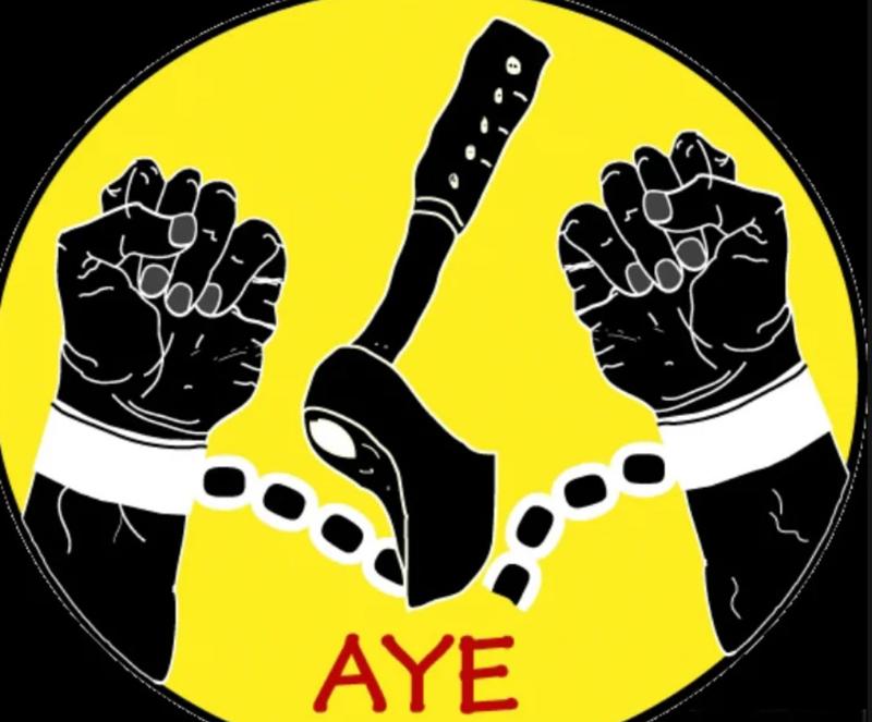 Axe: ascia, logo grafico su sfondo giallo che spezza una catena, quella della schiavitù, logo usato dalle prime confraternite studentesche che si ispiravano agli Skulls, i teschi americani.