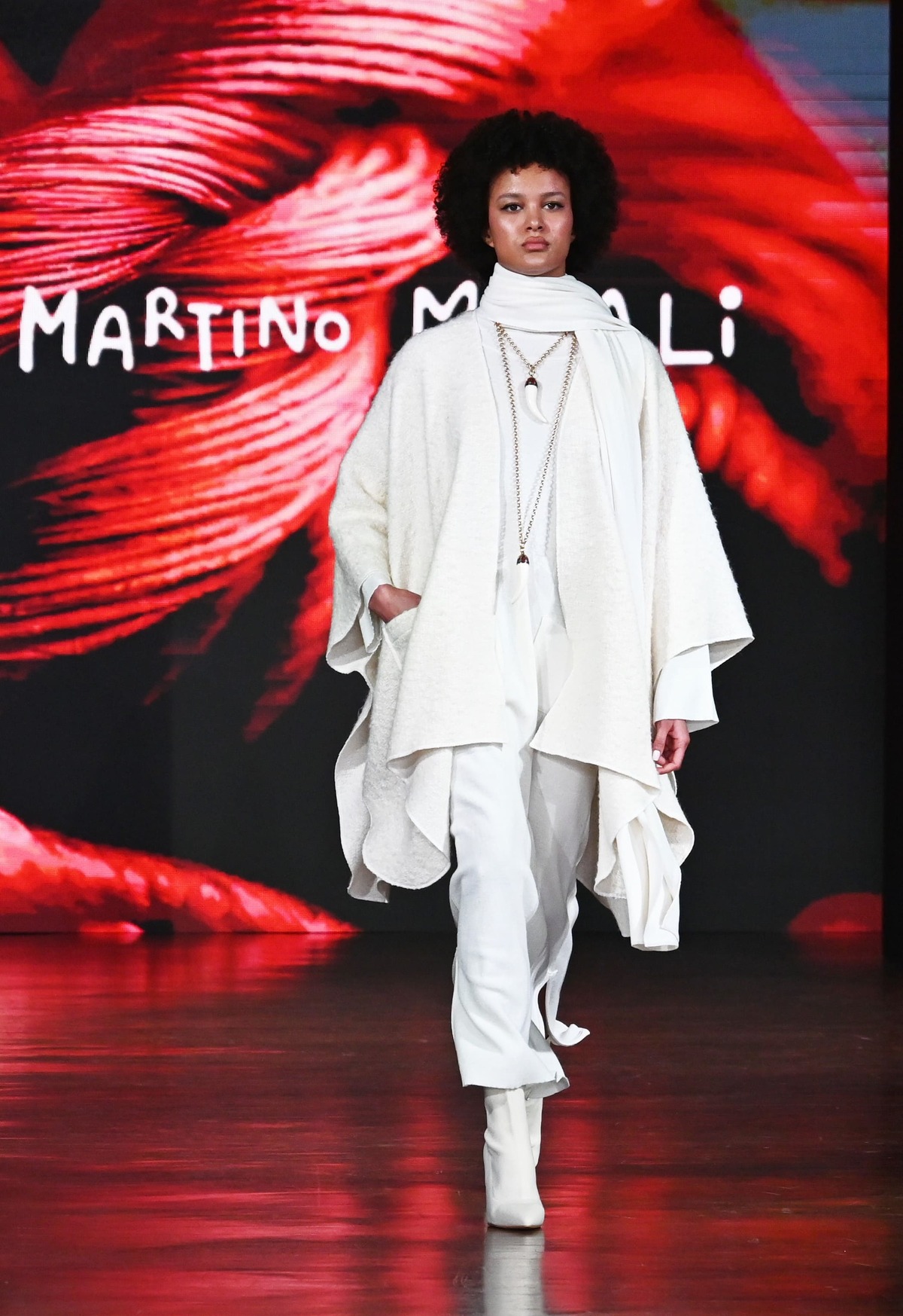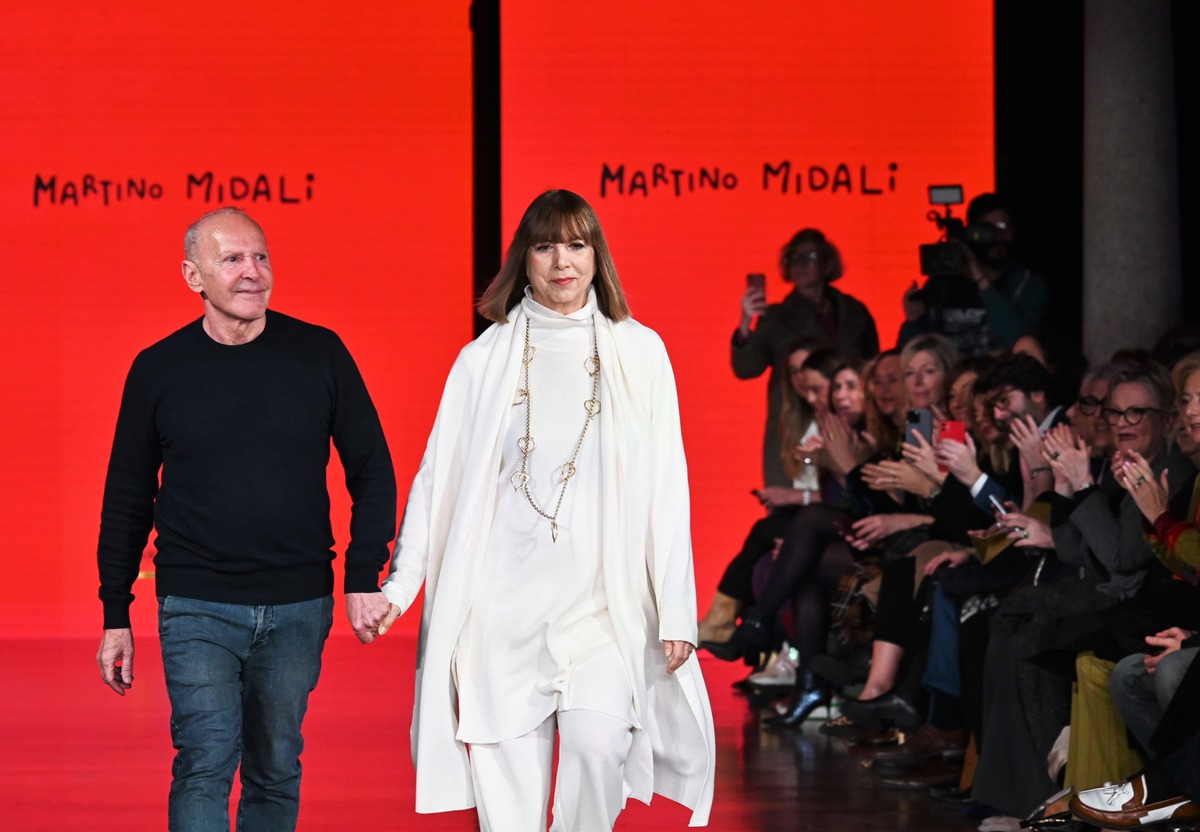 L’essenza femminile è un concentrato di stile sfaccettato e versatile nel quale ognidonna si riconosce e ritrova il suo dna. Lontano dai compromessi e fedele a un unico credo, l’autenticità. Martino Midali ha tradotto questa visione in una moda inclusiva e democratica, pensata per tutte le donne che indossano le sue creazioni disegnate come un manifesto, su di loro e per loro. Esattamente come nella collezione FW24 protagonista della passerella di Milano Moda Donna, interpretata non solo da modelle ma, come di consueto, anche da 6 donne comuni, tutte diverse ma tutte unite dalla scelta di vestire Martino Midali nel loro quotidiano.Gli anni 70 racchiusi in un cappotto. Nasce dal capospalla- signature di Midali- un viaggio tra suggestionicreative le cui forme e colori diventano stile tout court ed esplorano le linee fino a portarle a una deriva over, quella più affine al mondo del brand. Così cappotti come soprabiti flirtano con le silhouette – più scivolate e morbide accanto ad altre più slim e cinturate che accompagnano il corpo; si incantano con texture tartan cheaddolciscono il design più rigoroso; sono sfacciatamente Seventies nel rosso squillante, e decisamentesofisticati grazie ai dettagli delle texture. Il fascino irresistibile dell’essenziale firmato Midali si ferma sulla maglieria, che si riappropria di forme morbide e scivolate, incantandosi con il layering di strati morbidi e scambiabili tra di loro, aprendosi a nuove identità, come nella combo giacca e gonna scampanata. Fluidità è la direzione anche materica del jersey e delle sue pesantezze, della lana cotta, del tessuto spettinato e del denim oltre che della pelliccia colorata. La palette è gentile e avvolgente e sceglie il carta da zucchero e il grigio, il black&white rigato, il ciliegia fruttato, il rosso e il nero, il panna delicato.