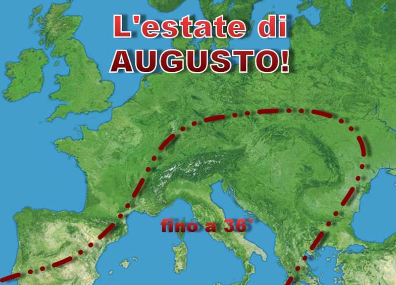 Le temperature massime saliranno gradualmente fino a raggiungere valori molto vicini ai 36/37° nelle regioni centrali, fino a 33° al Nord e punte di 34/35° al Sud. Il cielo si presentera' poco nuvoloso su gran parte delle regioni salvo locali addensamenti o possibili temporali di calore che si potranno sviluppare sui rilievi. Antonio Sano', fondatore del sito www.iLMeteo.it afferma che Augusto, abbraccera' l'Italia almeno sino a fine agosto. Dai primi di settembre, invece, la circolazione atmosferica mutera' verso un clima decisamente piu' fresco e piovoso, in attesa dell'arrivo dell'alta pressione delle Azzorre.