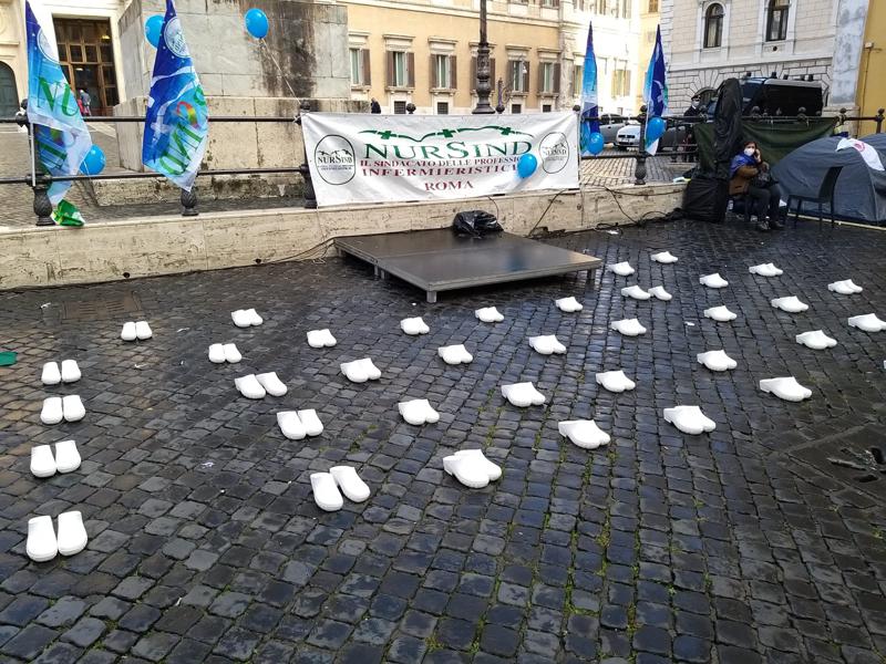 Non è mancato nel corso dell’iniziativa un momento dedicato proprio agli infermieri vittime di Covid. Un minuto di silenzio in mezzo a 42 paia di zoccoli bianchi per ricordare gli altrettanti colleghi stroncati dal virus. “Il report Inail di agosto - ha sottolineato il sindacato - ha messo in evidenza proprio come il tributo della categoria sia in termini di vittime che di infettati sia stato altissimo”. “Nonostante tutto - ha detto Bottega in una piazza piena ma composta – noi ci siamo stati, ci siamo e ci saremo. Ma la politica deve ascoltarci e accogliere le nostre istanze. Per prenderci cura dei cittadini, noi infermieri abbiamo bisogno che lo Stato si prenda cura di noi. Troppo facile chiamarci eroi. Suona come una sorta di pacca sulla spalla. Un ‘arrivederci e grazie’ che non aiuta a prendere coscienza e, quindi, a rimediare agli errori fatti negli anni, ai tagli lineari alla spesa per il personale, al blocco delle retribuzioni e alla spinta perversa verso una sanità sempre più privatizzata”.