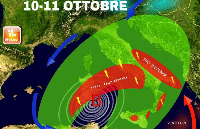 Una nuova fase di intenso maltempo sta per arrivare sulla nostra Penisola, segnatamente al Centro-Sud. Rischio nubifragi su molte regioni. La redazione web del sito www.iLMeteo.it avvisa che da venerdì notte la Sardegna, la Sicilia e gradualmente anche il resto delle regioni meridionali e centrali verranno raggiunte da un ciclone che porterà condizioni di diffuso maltempo. Nel corso di sabato 10 ottobre, rischio di forti temporali, nubifragi, smottamenti e frane potranno interessare gran parte delle regioni del Sud, attenzione particolare alla Puglia, Calabria ionica, Campania, ma anche sul Lazio, con nubifragio possibile su Roma.
