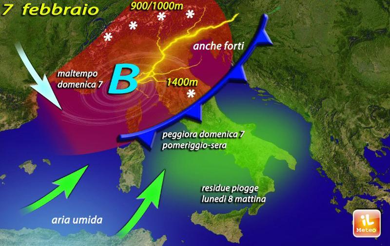 Nel corso del weekend una nuova perturbazione colpirà il Centro-Nord. Antonio Sanò, direttore e fondatore del sito www.iLMeteo.it comunica che da sabato pomeriggio/sera prime piogge interesseranno il Piemonte e la Liguria e le nubi aumenteranno lentamente su tutto il Nord e la Toscana. Domenica 7 piogge diffuse e localmente intense su Liguria, Pianura Padana, alta Toscana, Alpi e Prealpi. Maltempo sul Friuli Venezia Giulia. La neve cadrà copiosa sulle Alpi sopra i 900/1000 metri. Entro sera/notte migliora al Nord mentre le piogge colpiscono il resto della Toscana, l’Umbria e il Lazio, anche con dei temporali. Lunedì 8 tempo in deciso miglioramento. Un nuovo peggioramento è atteso tra mercoledì 10 e giovedì 11 con piogge al Centro-Sud e Nordest.