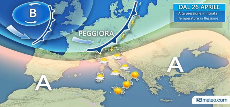 DAL 26 APRILE QUALCHE TEMPORALE IN PIU’ E RIDIMENSIONATA TERMICA – “Dal 26 aprile e nei giorni successivi l’alta pressione tenderà ad indebolirsi, favorendo qualche rovescio o temporale in più” – avverte l’esperto di 3bmeteo.com – “nello specifico giovedì 26 è atteso il passaggio di acquazzoni al Nord e in particolare al Nordest, mentre nei giorni successivi qualche nota instabile potrebbe interessare anche le aree del Centro, oltre che Alpi e Piemonte. Il tutto accompagnato da un graduale calo delle temperature a partire dal Nord, su valori che si avvicineranno così alle medie del periodo ( clima dunque ancora mite, ma non troppo caldo )”.