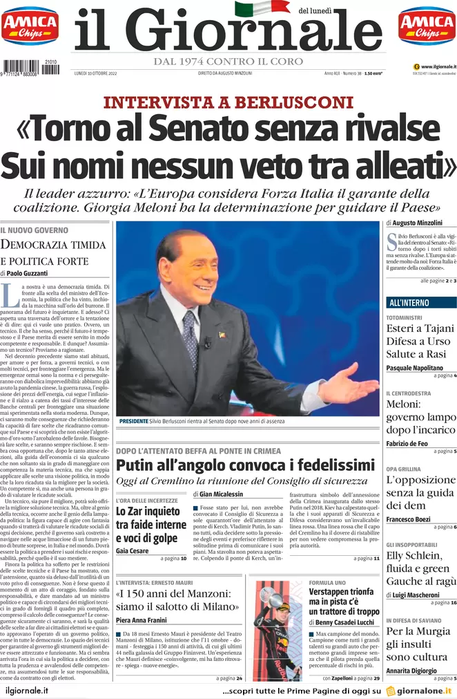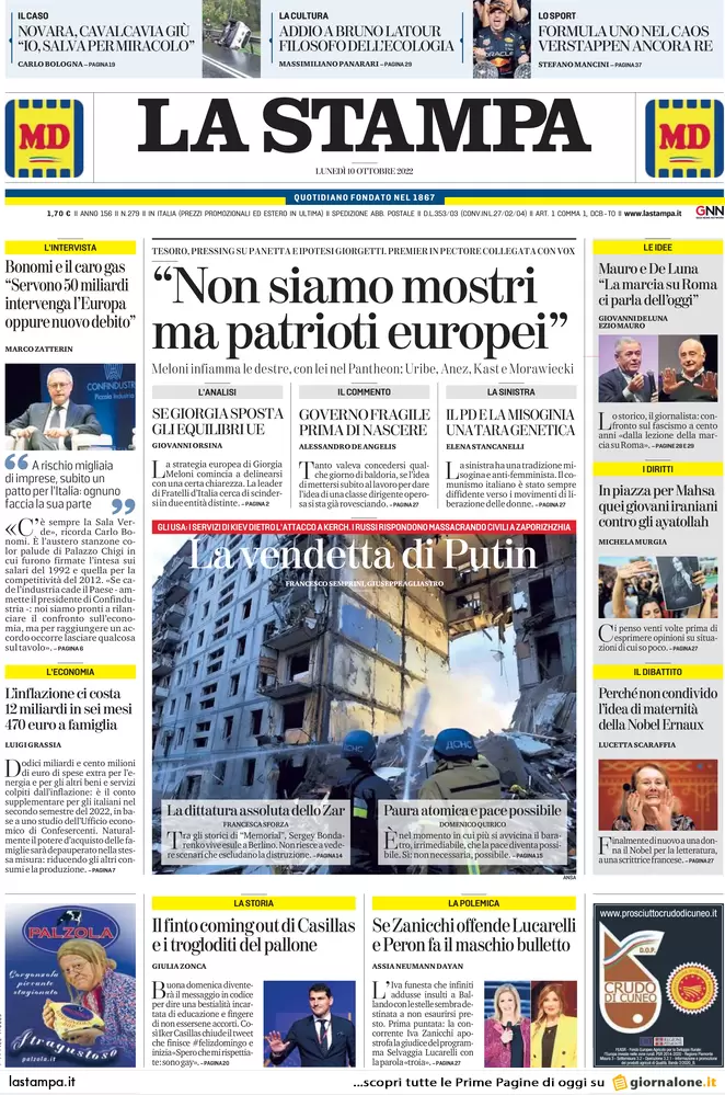 Scopri qui tutte le prime pagine e le principali notizie dei quotidiani italiani per il giorno 10 ottobre 2022
