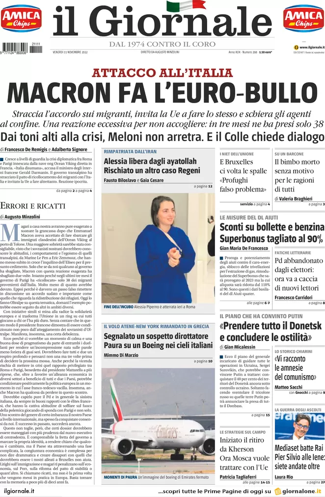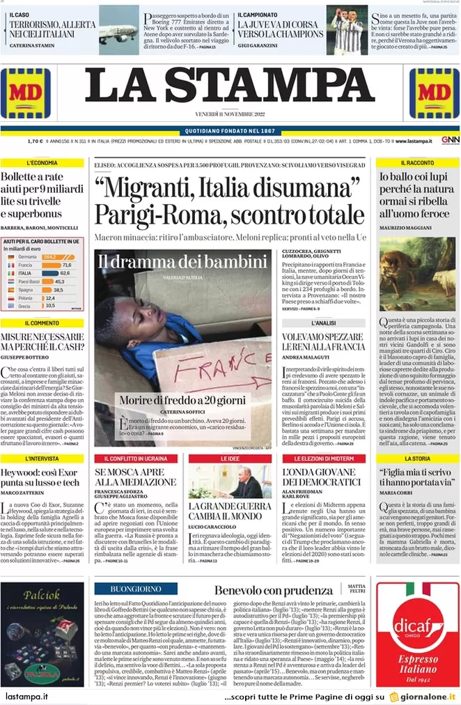 Scopri qui tutte le prime pagine e le principali notizie dei quotidiani italiani per il giorno 11 novembre 2022