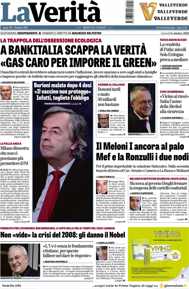 Scopri qui tutte le prime pagine e le principali notizie dei quotidiani italiani per il giorno 11 ottobre 2022