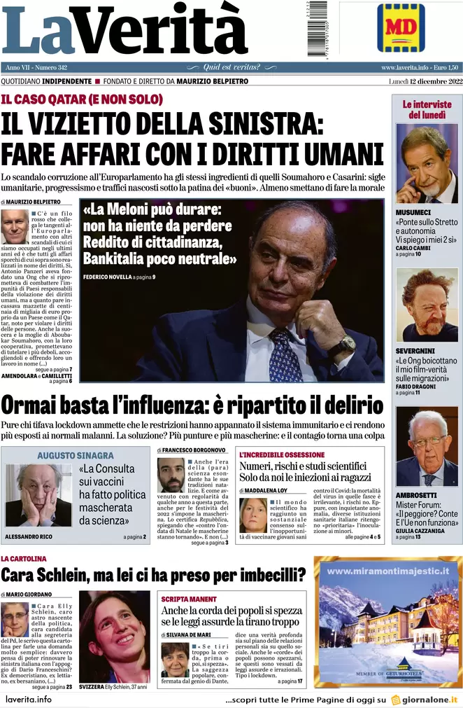 Scopri qui tutte le prime pagine e le principali notizie dei quotidiani italiani per il giorno 12 dicembre 2022