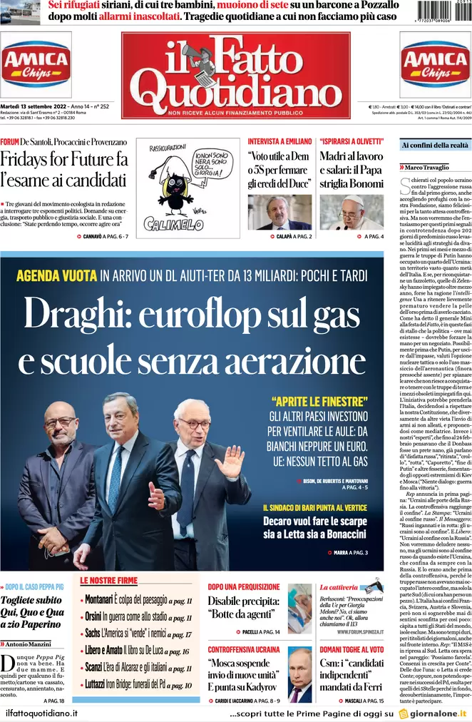 Scopri qui tutte le prime pagine e le principali notizie dei quotidiani italiani per il giorno 13 settembre 2022