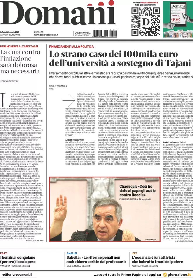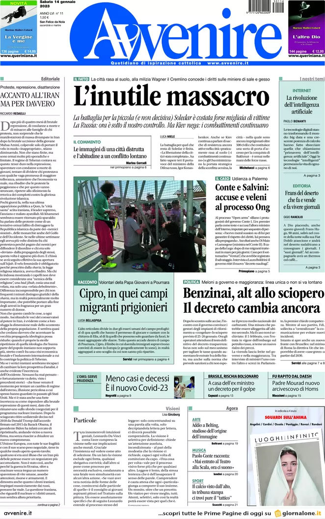 Scopri qui tutte le prime pagine e le principali notizie dei quotidiani italiani per il giorno 14 gennaio 2023