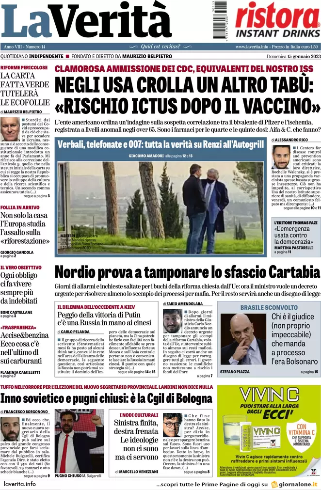 Scopri qui tutte le prime pagine e le principali notizie dei quotidiani italiani per il giorno 15 gennaio 2023