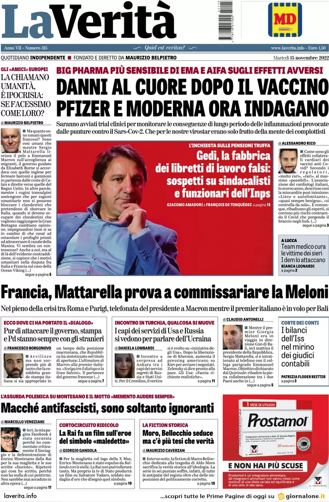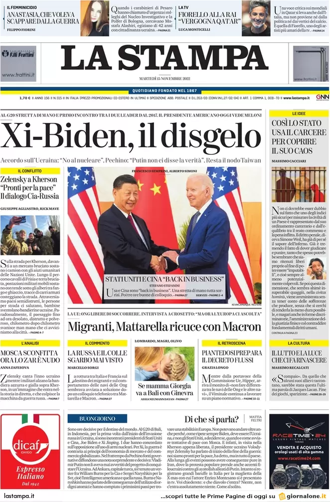 Scopri qui tutte le prime pagine e le principali notizie dei quotidiani italiani per il giorno 15 novembre 2022