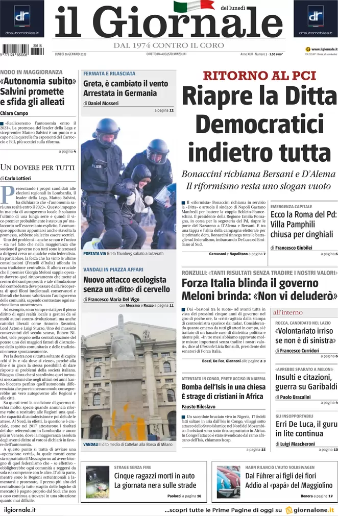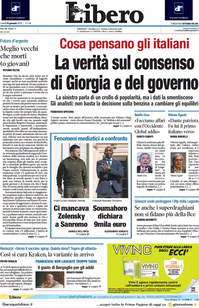 Scopri qui tutte le prime pagine e le principali notizie dei quotidiani italiani per il giorno 16 gennaio 2023