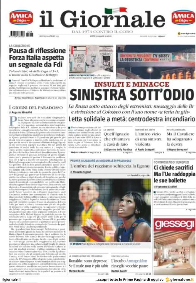 Prime pagine giornali 16 ottobre 2022. Il governo è appeso a una telefonata