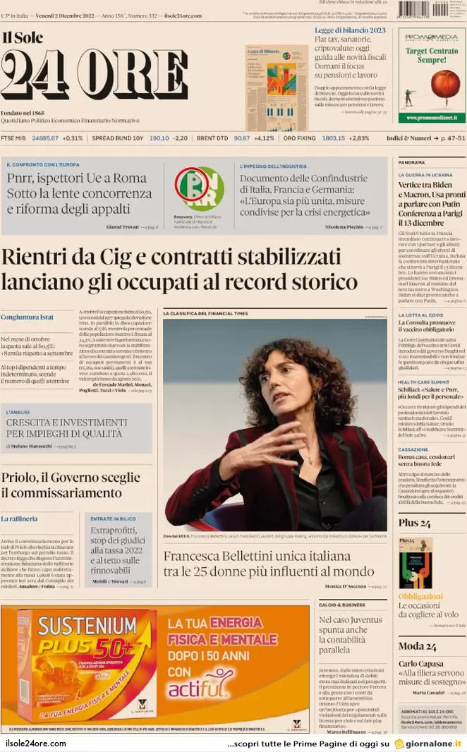 Di seguito le prime pagine dei principali quotidiani italiani per il giorno 2 dicembre 2022. CLICCA SULL'ELENCO QUI SOTTO PER LEGGERE TUTTE LE PRIME PAGINE