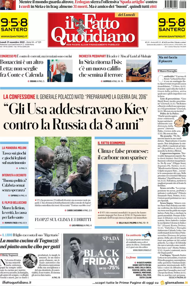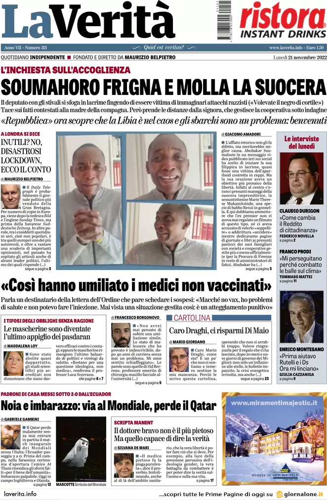 Scopri qui tutte le prime pagine e le principali notizie dei quotidiani italiani per il giorno 21 novembre 2022