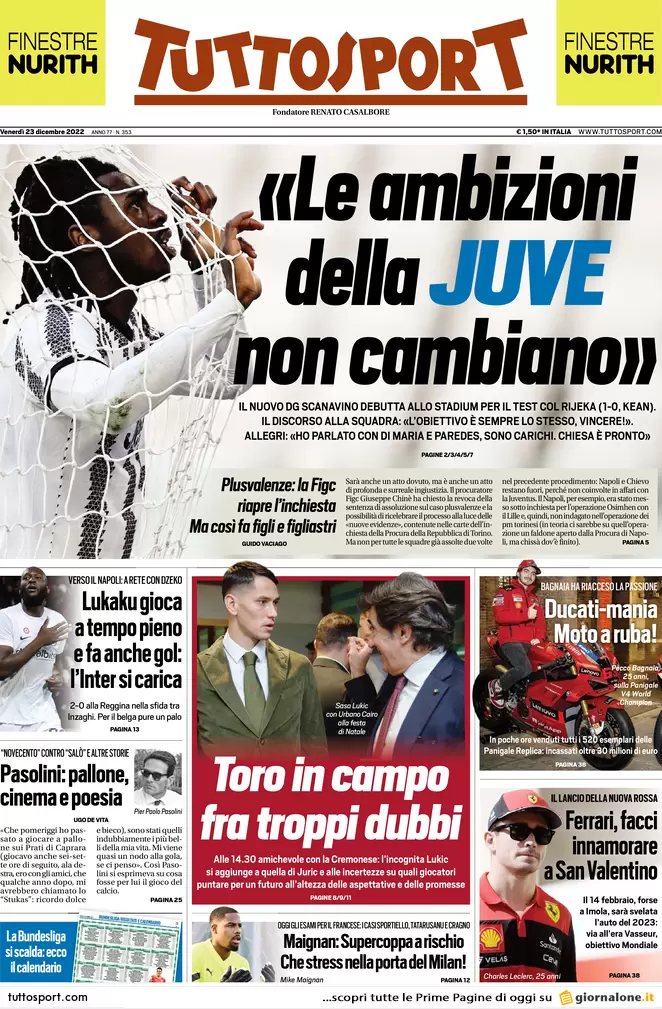 Di seguito le prime pagine dei principali quotidiani italiani per il giorno 23 dicembre 2022. CLICCA SULL’ELENCO QUI SOTTO PER LEGGERE TUTTE LE PRIME PAGINE