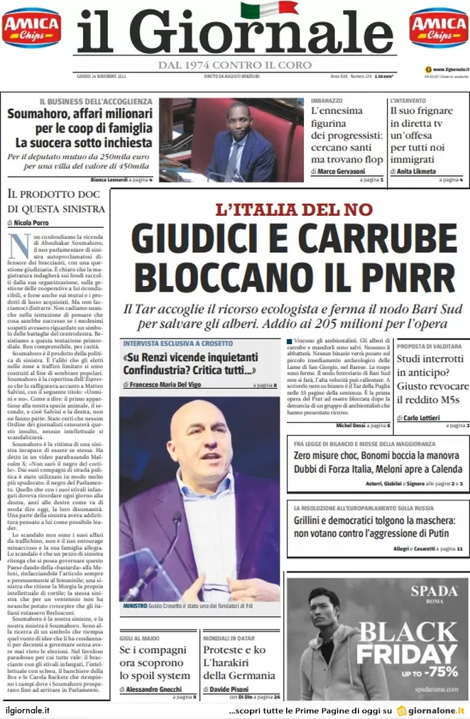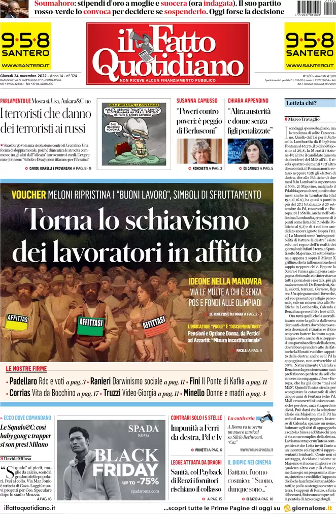 Scopri qui tutte le prime pagine e le principali notizie dei quotidiani italiani per il giorno 24 novembre 2022