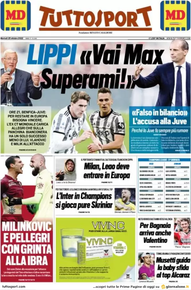 Di seguito le prime pagine dei principali quotidiani italiani per il giorno 25 ottobre 2022. CLICCA SULL’ELENCO QUI SOTTO PER LEGGERE TUTTE LE PRIME PAGINE