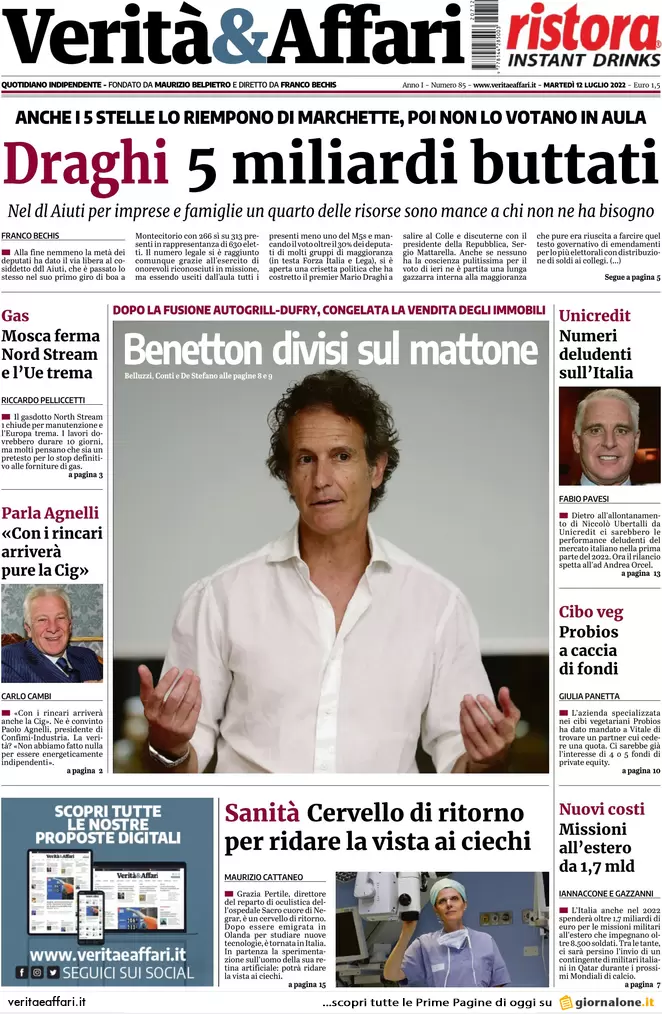 Scopri qui tutte le prime pagine e le principali notizie dei quotidiani economici italiani per il giorno 12 luglio 2022
