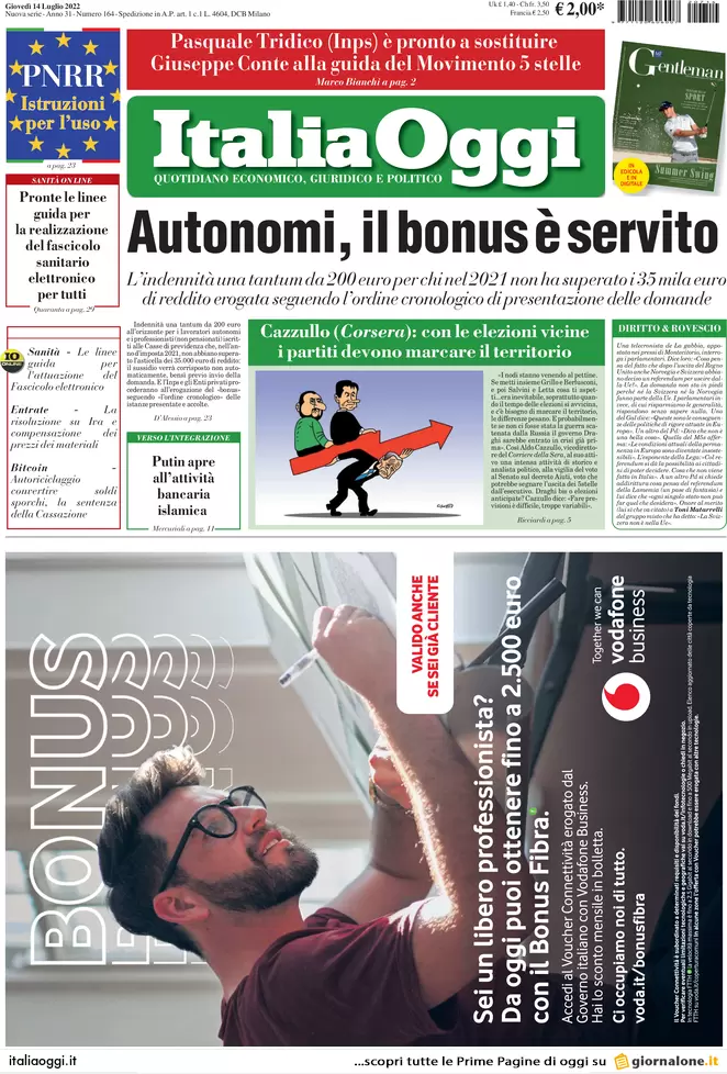 Scopri qui tutte le prime pagine e le principali notizie dei quotidiani economici italiani per il giorno 14 luglio 2022
