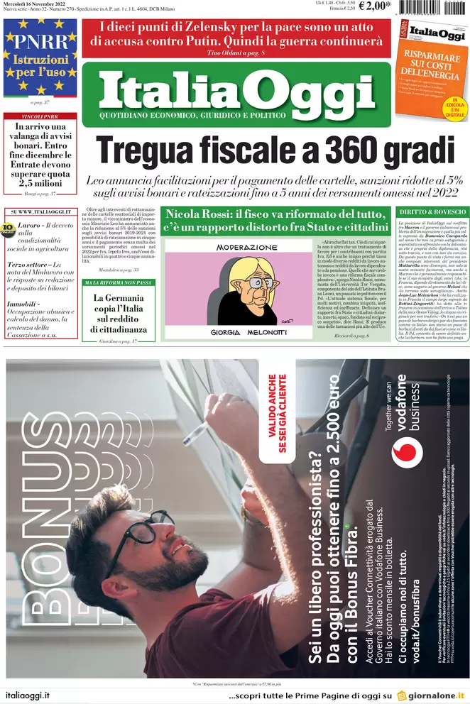 Scopri qui tutte le prime pagine e le principali notizie dei quotidiani economici italiani per il giorno 16 novembre 2022