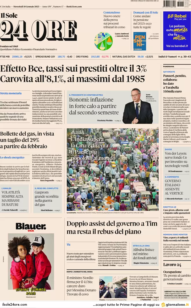 Prime pagine dei giornali economici 18 gennaio 2023