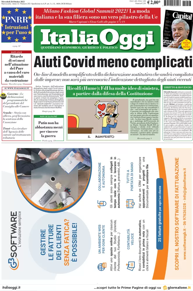 Prime pagine dei giornali economici 26 ottobre 2022