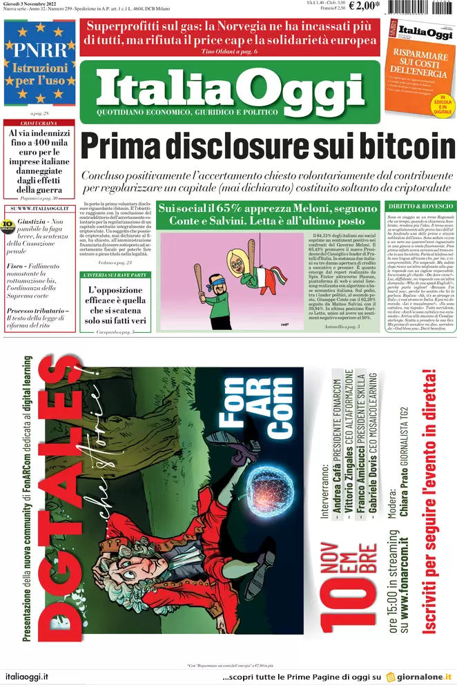 Scopri qui tutte le prime pagine e le principali notizie dei quotidiani economici italiani per il giorno 3 novembre 2022