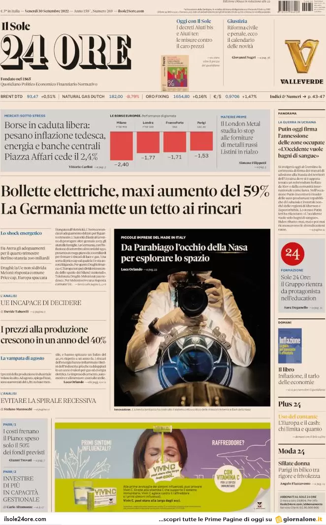 Prime pagine dei giornali economici 30 settembre 2022