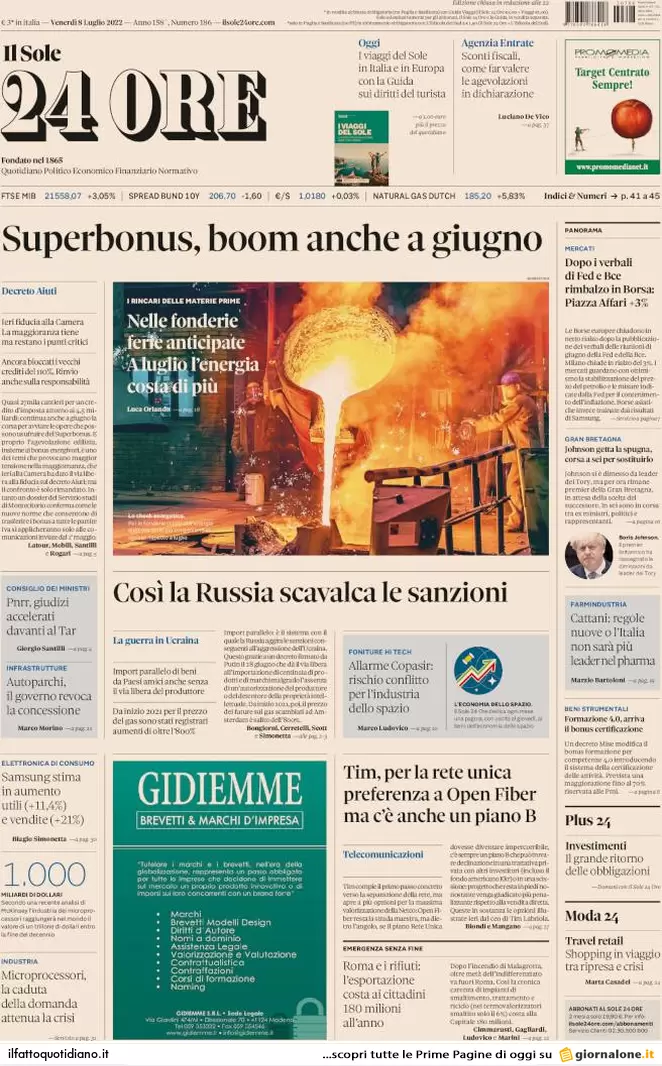 Scopri qui tutte le prime pagine e le principali notizie dei quotidiani economici italiani per il giorno 8 luglio 2022