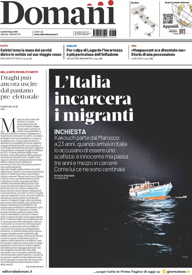 Scopri qui tutte le prime pagine e le principali notizie dei quotidiani italiani per il giorno 13 giugno 2022