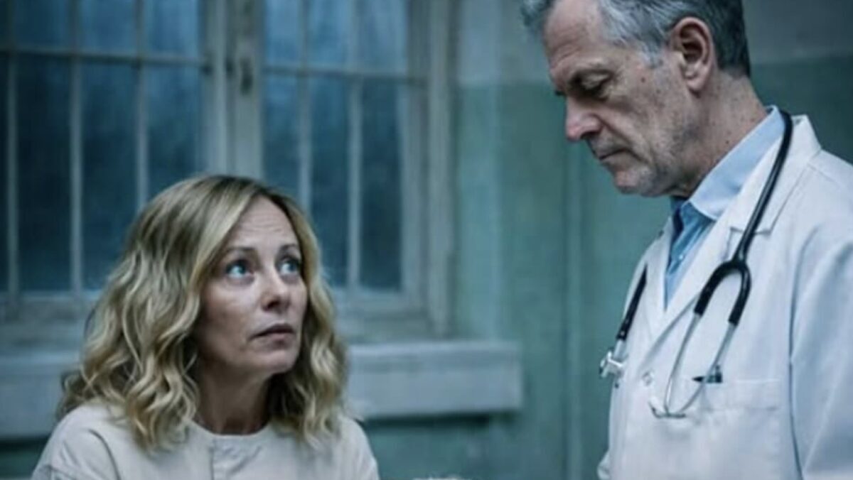 Un fotomontaggio di Giorgia Meloni rinchiusa in un ospedale psichiatrico, con la camicia di forza e lo sguardo assente. Di fronte a lei un medico le chiede: ”E dimmi Giorgia questi magistrati che liberano spacciatori e pedofili sono qui in questa stanza con noi?”. L’immagine è stata postata da deputato di Avs, Francesco Emilio Borrelli sui social per rispondere alle parole della premier che aveva messo in guardia da una vittoria del sì al referendum sulla giustizia perchè in que caso gli stupratori rimarrebbero più facilmente in libertà.