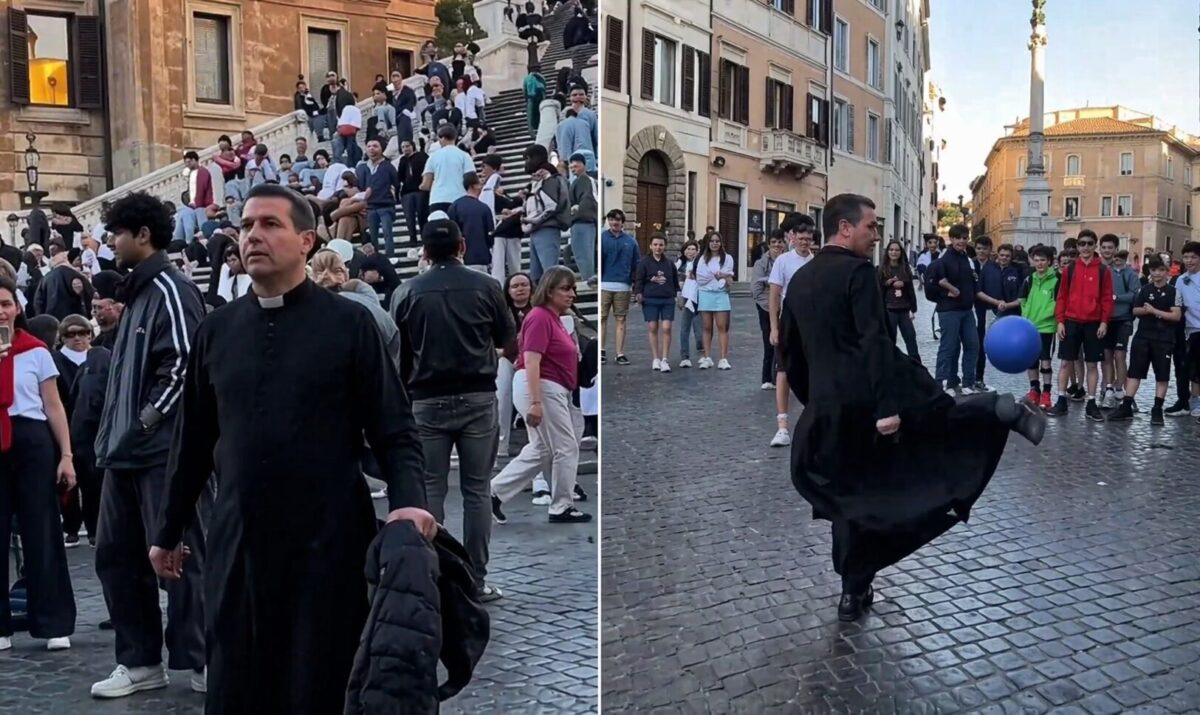 Durante alcune ordinazioni sacerdotali, un giovane turista inglese ha lanciato un pallone verso due preti argentini, P. Javier Olivera Ravasi e Pablo Aguilera-Pich. La reazione? Immediata. I due religiosi non hanno resistito e hanno iniziato a palleggiare al volo tra le risate dei presenti.