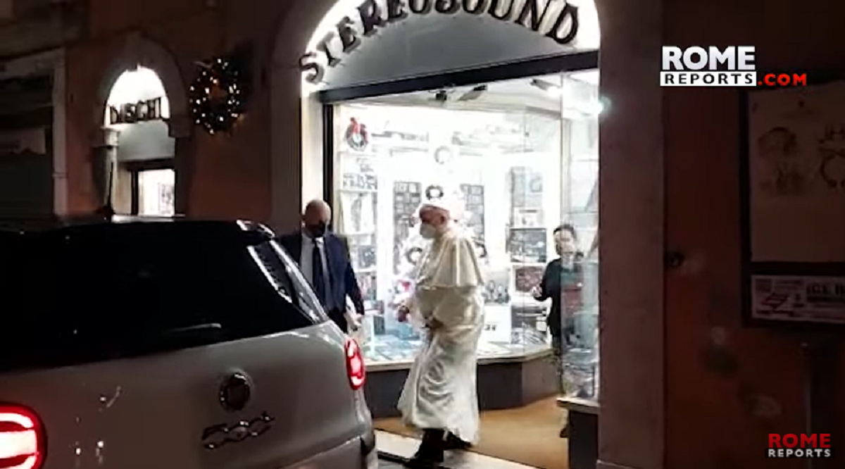Bergoglio conosce i proprietari di "Stereosound" da quando veniva a Roma prima di diventare Papa. Dopo la visita i proprietari del negozio gli hanno regalato un disco di musica classica.