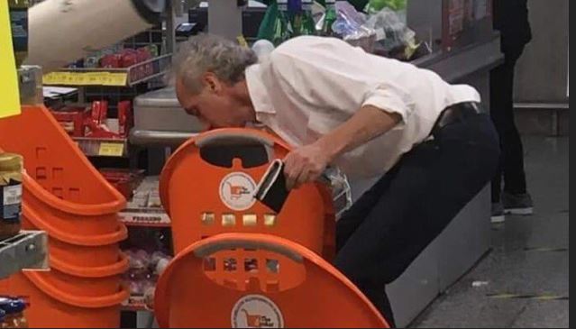Rimbalza sui social la foto del direttore del Fatto Quotidiano Marco Travaglio mentre è al supermercato senza guanti nè mascherina. In rete è scoppiata inevitabilmente l'ironia e anche qualche polemica.