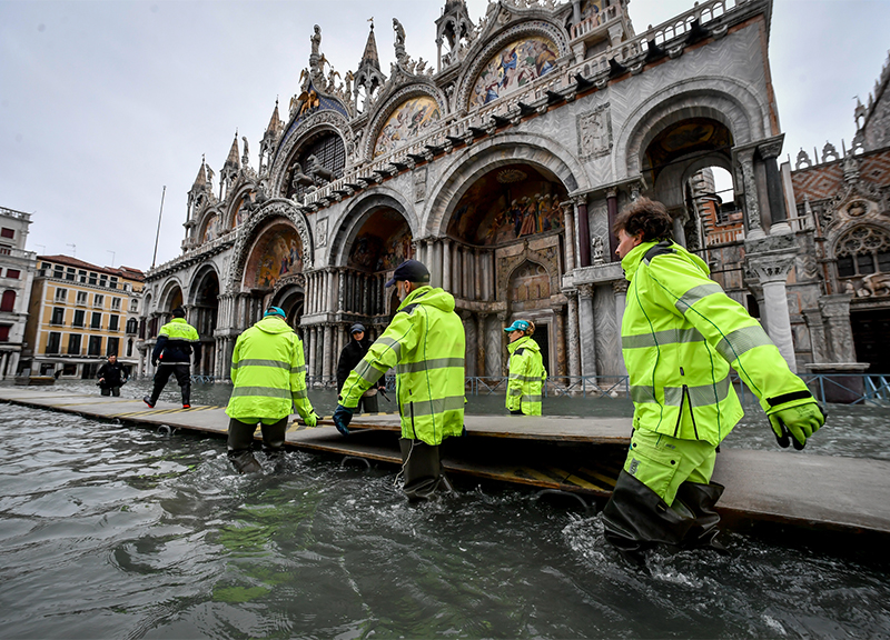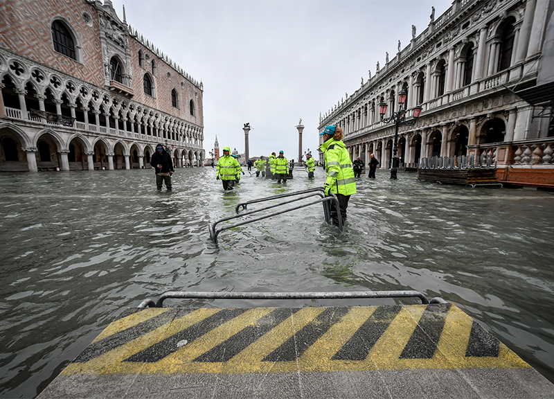 Venezia acqua alta: piazza San Marco allagata per il 70% e inagibile. Il sindaco Brugnano stima un miliardo di euro di danni