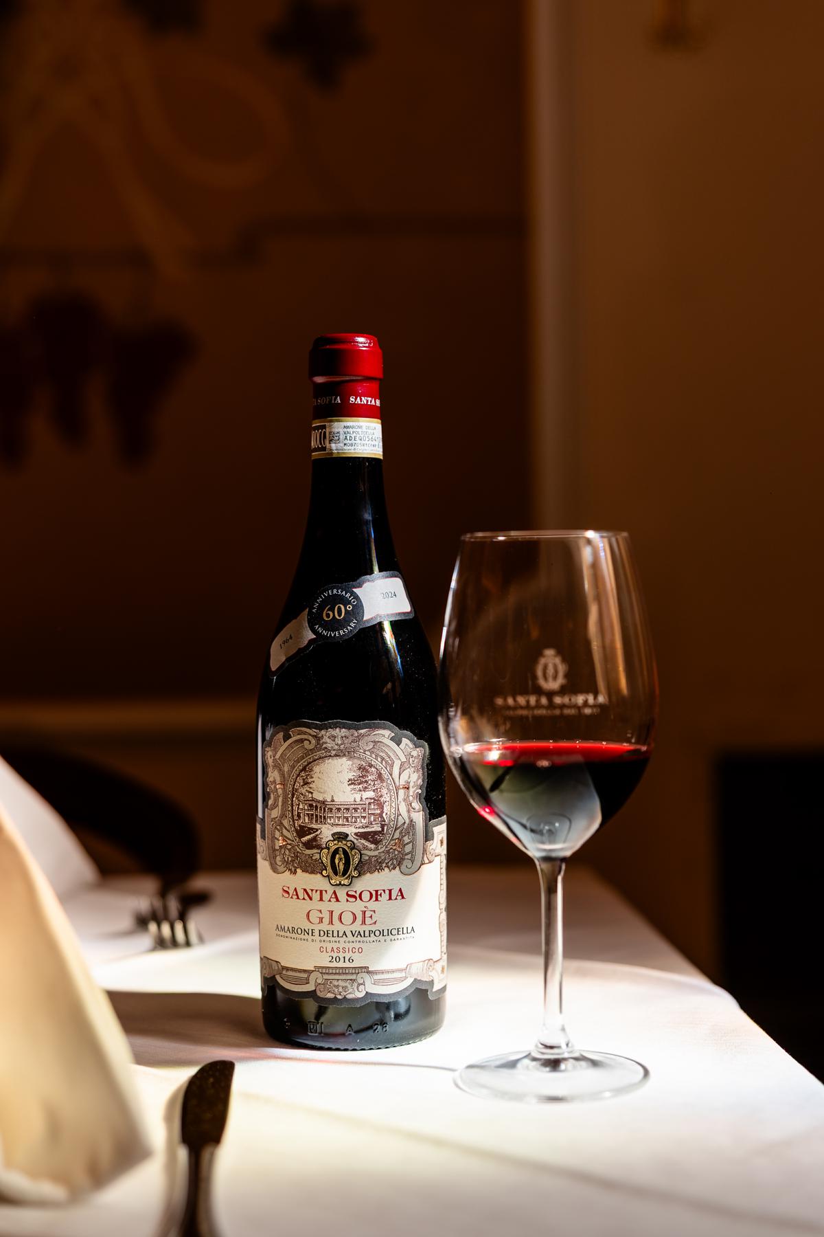 Da allora viene prodotto solo in particolari annate (20 fino ad oggi), quando si verificano le condizioni ideali per la corretta maturazione delle uve Corvina, Corvinone e Rondinella che crescono in 3 ettari di vigneto, tra i 195 e i 325 m .s.l.m, e che vengono attentamente selezionate e sottoposte a un appassimento di circa 100 giorni. Seguono una macerazione di circa 30 giorni in acciaio inox e un affinamento di 42 mesi in botti di rovere di Slavonia e tonneaux da 500 litri di rovere francese di media tostatura e infine un invecchiamento in bottiglia di almeno 4 anni (ma che può superare i 10 anni). Il risultato è uno dei vini più premiati di Santa Sofia, dalla forte personalità e struttura, adatto ad accompagnare piatti di carne ricchi e speziati, come la lepre alla Royale e la beccaccia, ma anche formaggi stagionati come Castelmagno o Bitto.