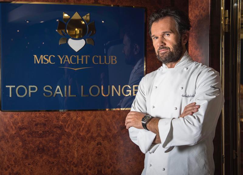 Su tutte le crociere che percorreranno i mari del Mediterraneo, degli Emirati Arabi, delle Antille e di Cuba, e in particolare per quanto riguarda le esperienze MSC Yacht Club, la prestigiosa firma del celebre chef si assaporerà in piatti come il cappello del prete caramellato con agrumi, sedano rapa e melagrana, passando per delizie ricercate come la Crème brùlée al foie gras, la vellutata di asparagi con perle di Tapioca, il cocktail di gamberi in coppa martini e il ristretto di manzo con raviolini di carne come antipasti, giungendo al risotto alle seppie, alla coda di aragosta alla griglia e all’Halibut dell’Atlantico annerito.