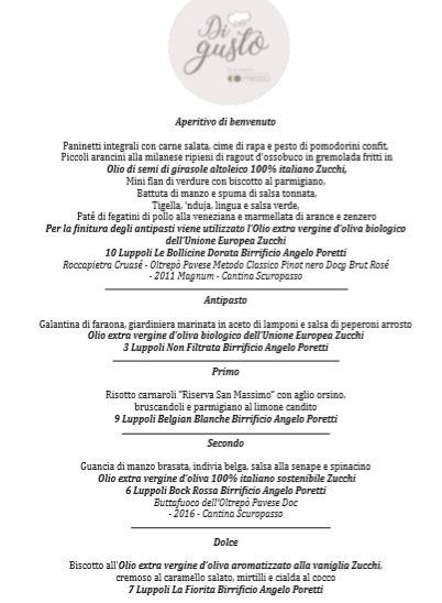 L'evento è stato un’occasione speciale: a cena con l’Osteria del Ponte L’edizione 2019 di Di Gusto continua in grande stile, con un’esclusiva cena placée che ha visto protagonista lo speciale menù realizzato da Simone Zanon chef dell'Osteria del Ponte a Trezzano sul Naviglio (di Patrizia Meazza - affiancata nella gestione dai due figli Alessia e Francesco Angelillo - patron anche dell'Antica Osteria di Ronchettino di Milano), garanzia d’eccellenza con la sua brigata.