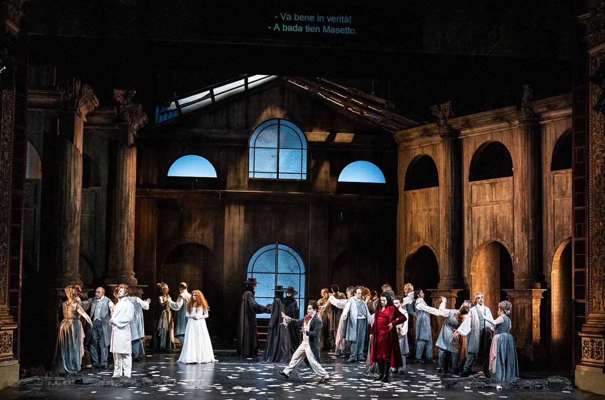 L’allestimento, firmato dal regista Paul-Émile Fourny, si distingue per un’interpretazione audace e visionaria del celebre dramma giocoso. In questa lettura, Don Giovanni si trasfigura in un vampiro seduttore, evocando le figure archetipiche di Dracula e Nosferatu. Le atmosfere notturne, le luci crepuscolari e la continua tensione tra eros e morte avvolgono la scena in un’estetica gotica che affascina e inquieta. Il protagonista, incarnato dal baritono Christian Federici, non è solo un libertino, ma un’entità mitologica che si nutre del desiderio altrui e che, come vuole la leggenda vampirica, viene infine punito dal soprannaturale.
