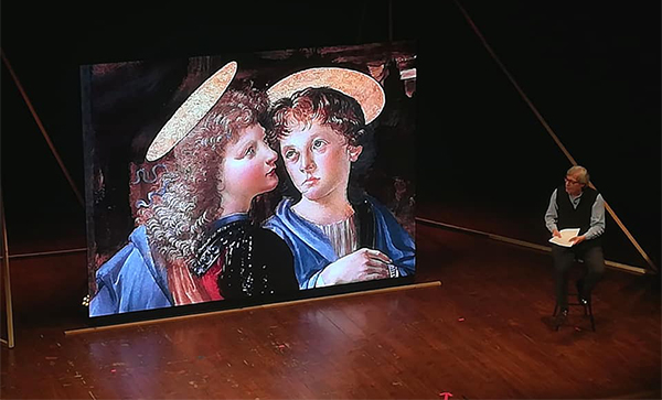 Raccontare un simile personaggio all’interno di uno spettacolo teatrale, riassumerlo per i non addetti ai lavori in poco più di tre ore, è un’impresa pressoché impossibile; ma se esiste un uomo che può tentare tale impresa, quell’uomo è di certo Vittorio Sgarbi, il quale non conosce rivali quanto a bagaglio artistico/culturale e a capacità di espressione. Ma come affrontare un gigante di simili dimensioni? Sgarbi, in linea con la propria professionalità, sceglie di concentrarsi sul Leonardo pittore, non soltanto considerando che l’arte è la materia a lui più congeniale, ma anche perché, di tutti i talenti che gli possono essere attribuiti, la pittura fu la più rappresentativa, avendo prodotto capolavori ineguagliabili.