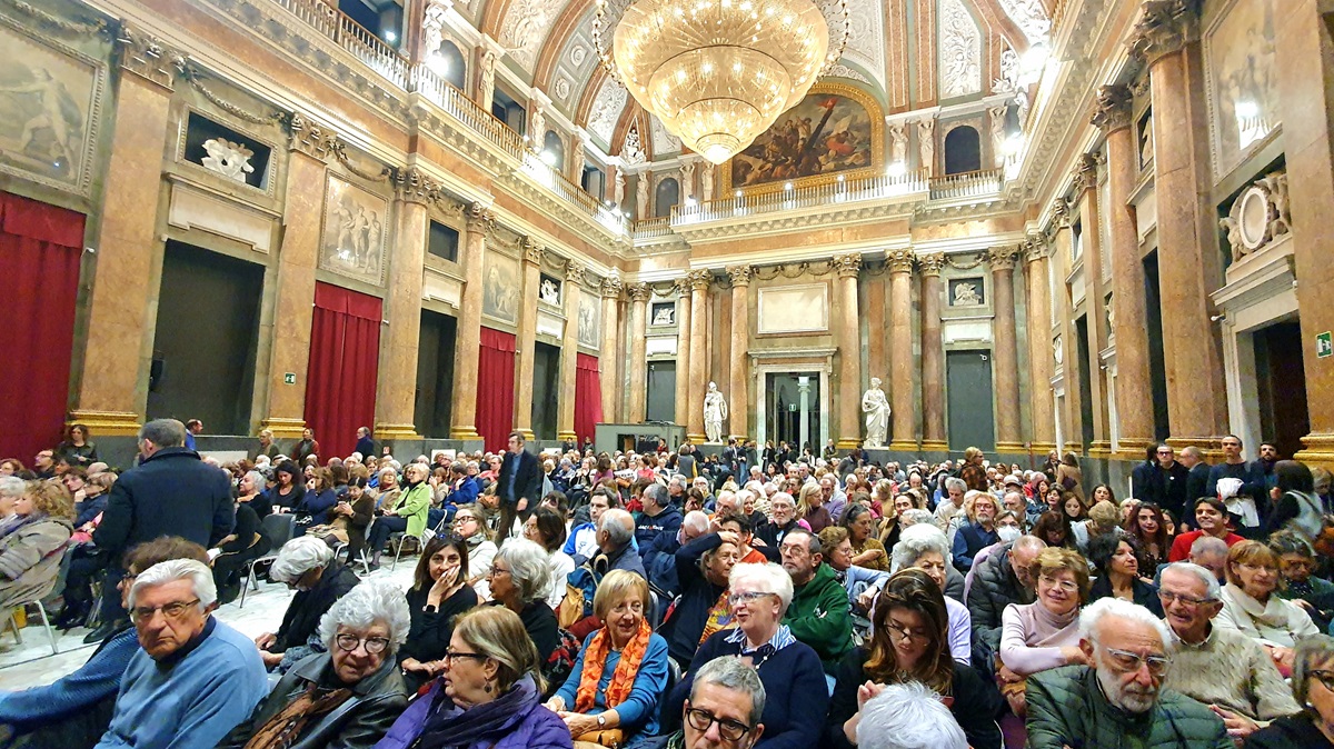Palazzo Ducale Fondazione per la Cultura era al massimo della sua capienza per l’arrivo in città, lo scorso 16 novembre, del Premio Nobel Orhan Pamuk, da sempre molto legato a Genova. Non a caso ha chiesto di poter fare una visita approfondita nel corso del suo soggiorno, prima di volare verso altre destinazioni, tra cui il Book City di Milano. Pamuk è in Italia per presentare il suo ultimo libro Ricordi di montagne lontane, edito da Einaudi con un formato più grande della norma, interamente illustrato. Si tratta infatti di un volume particolare, all’interno del quale il Premio Nobel ha selezionato e raccolto alcune pagine dei suoi taccuini, costituiti da pensieri e disegni. Ha spiegato lui stesso a Genova, dopo l’introduzione del Sindaco Marco Bucci e in dialogo con i colleghi Marco Ansaldo e Andrea Canobbio, la genesi di questa opera speciale: “Dipingo sin da quando ero un bambino, ma per un lungo periodo ho smesso di farlo per concentrarmi prima negli studi di ingegneria e poi nei miei romanzi. Dopo oltre vent’anni di scrittura mi sono accorto che il pittore in me non era mai davvero morto, perciò un bel giorno sono andato a comprare i colori e ho ricominciato a disegnare. Realizzo piccoli schizzi quotidianamente, che illustrano i miei stati d’animo, i miei ricordi e in buona parte i paesaggi che osservo, specie dalla mia casa. In questo libro ho scelto alcune annotazioni e una serie di dipinti: scrittura e pittura, le due attività che mi rendono felice”.