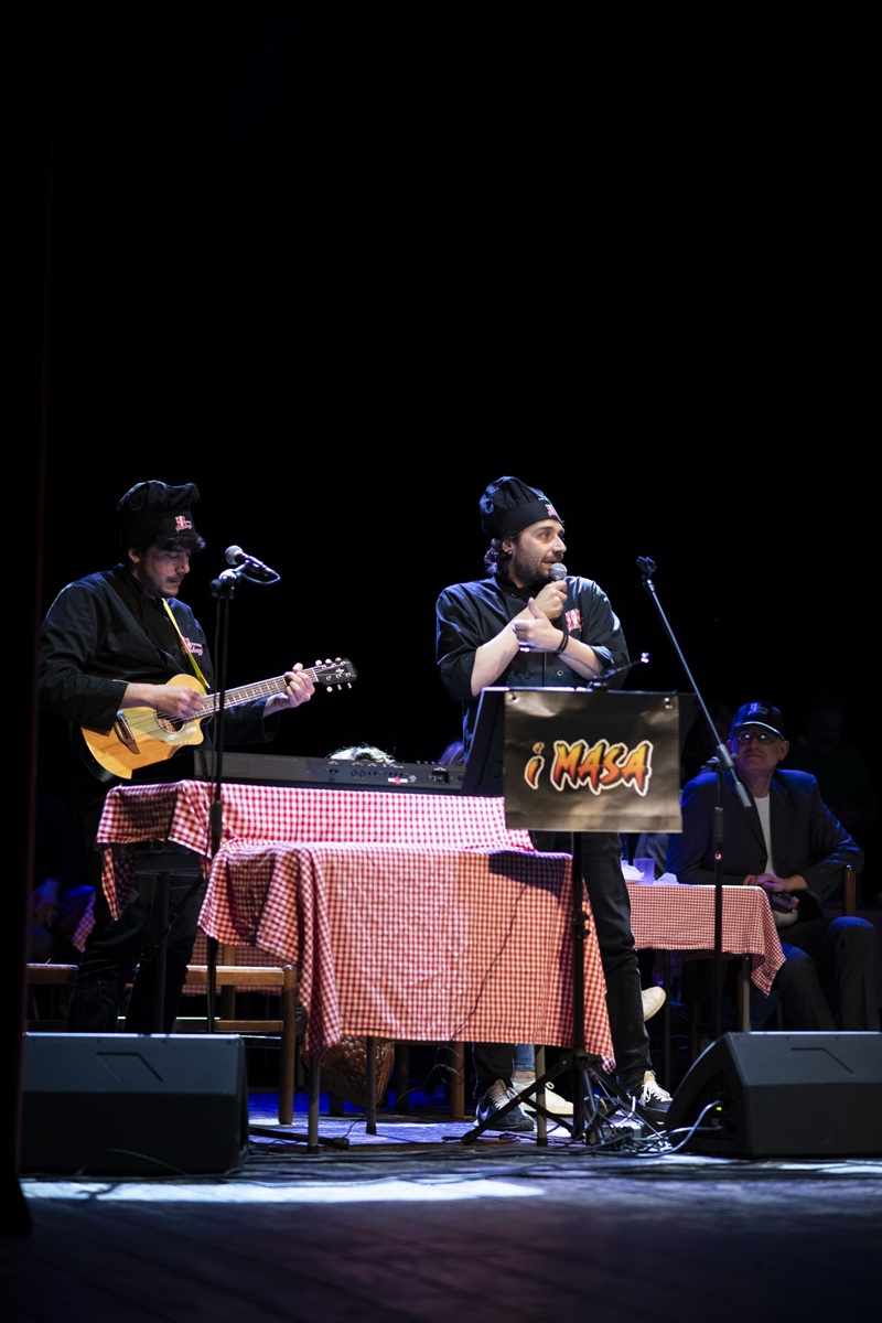 Musica e comicità si intrecciano con maestria. Il duo musicale I Masa strappa applausi con brani parodici: Vasco Rossi si fonde con Rossini, “Sere nere” si trasforma in “Clistere” e l’epica lirica incontra il rock da bar. Tutto è lecito in Osteria, persino far accendere i cellulari del pubblico per illuminare le cameriere che cantano, o coinvolgere gli spettatori con una storia da pubblicare su Instagram.