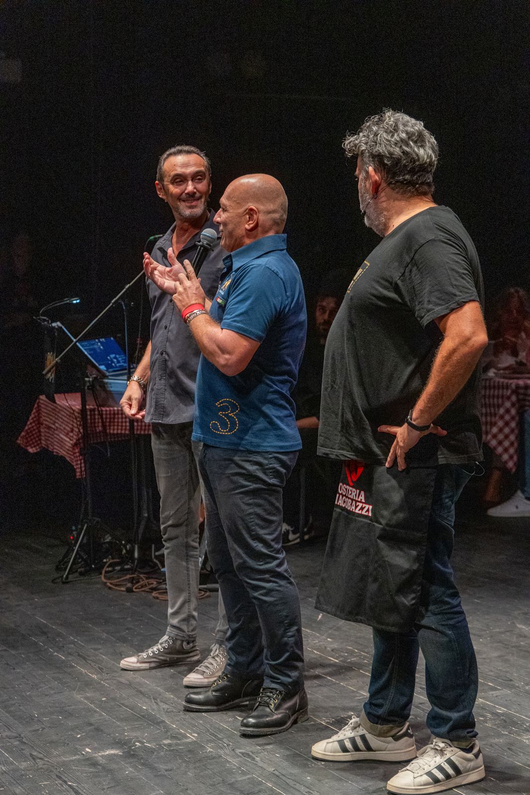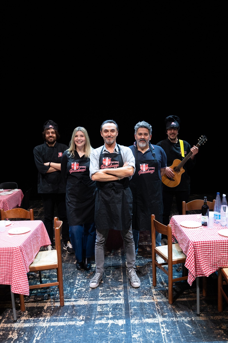 Al Teatro delle Muse di Ancona giovedì 13 novembre il sipario si è aperto non su una scena convenzionale, ma su un’osteria vivida, ricreata con precisione scenografica e vibrante di calore umano. Non una semplice ambientazione, bensì un vero e proprio spazio conviviale dove il vino scorre tra le risate, il pubblico cena sul palco e il teatro si trasforma in un’esperienza immersiva.