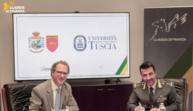 È questo l’obiettivo principale dell’atto firmato ieri tra l’Università degli studi della Tuscia e la Guardia di Finanza, in occasione di un incontro che si è tenuto presso la caserma “M.A.V.M. Ten. Arcioni” di Roma, in via Nomentana.