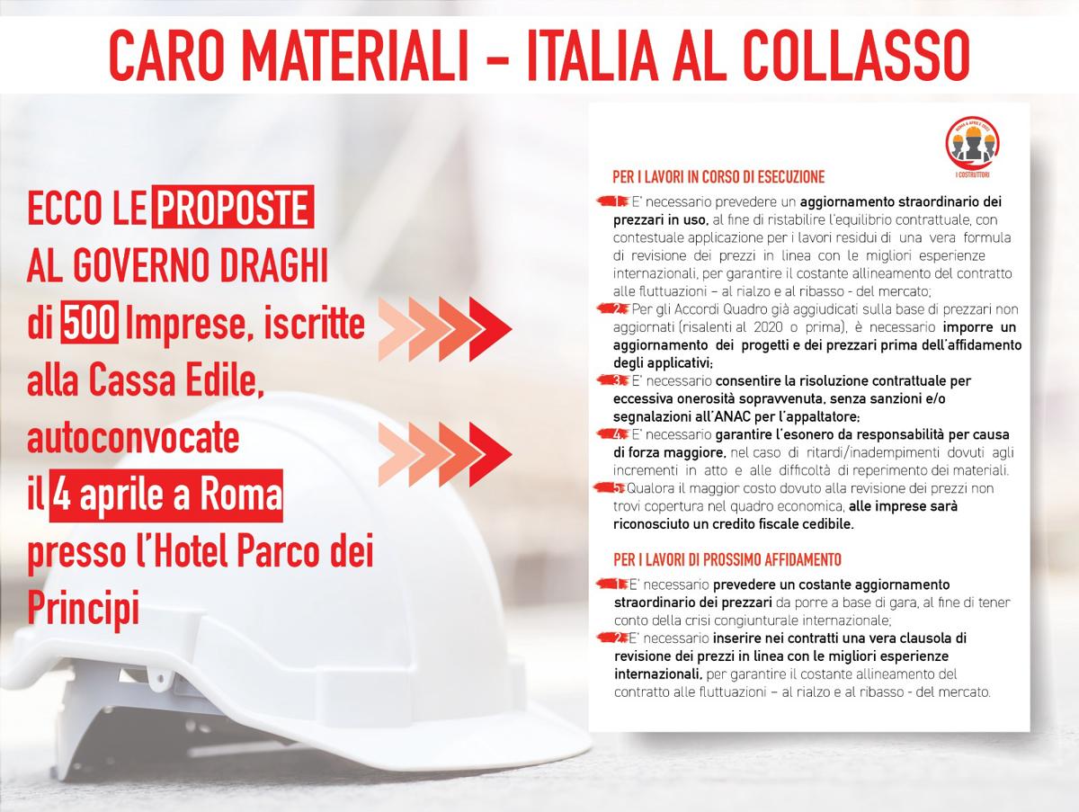 Caro prezzi, i costruttori di tutta Italia in crisi profonda scrivono a Draghi
